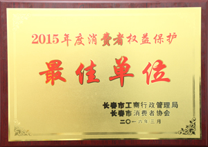 荣获2015年度消费者权益保护最佳单位