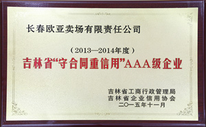荣获吉林省“守合同重信用”AAA级企业