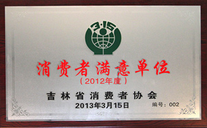 荣获2012年度消费者满意单位