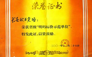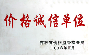 荣获吉林省第三届“价格诚信单位”