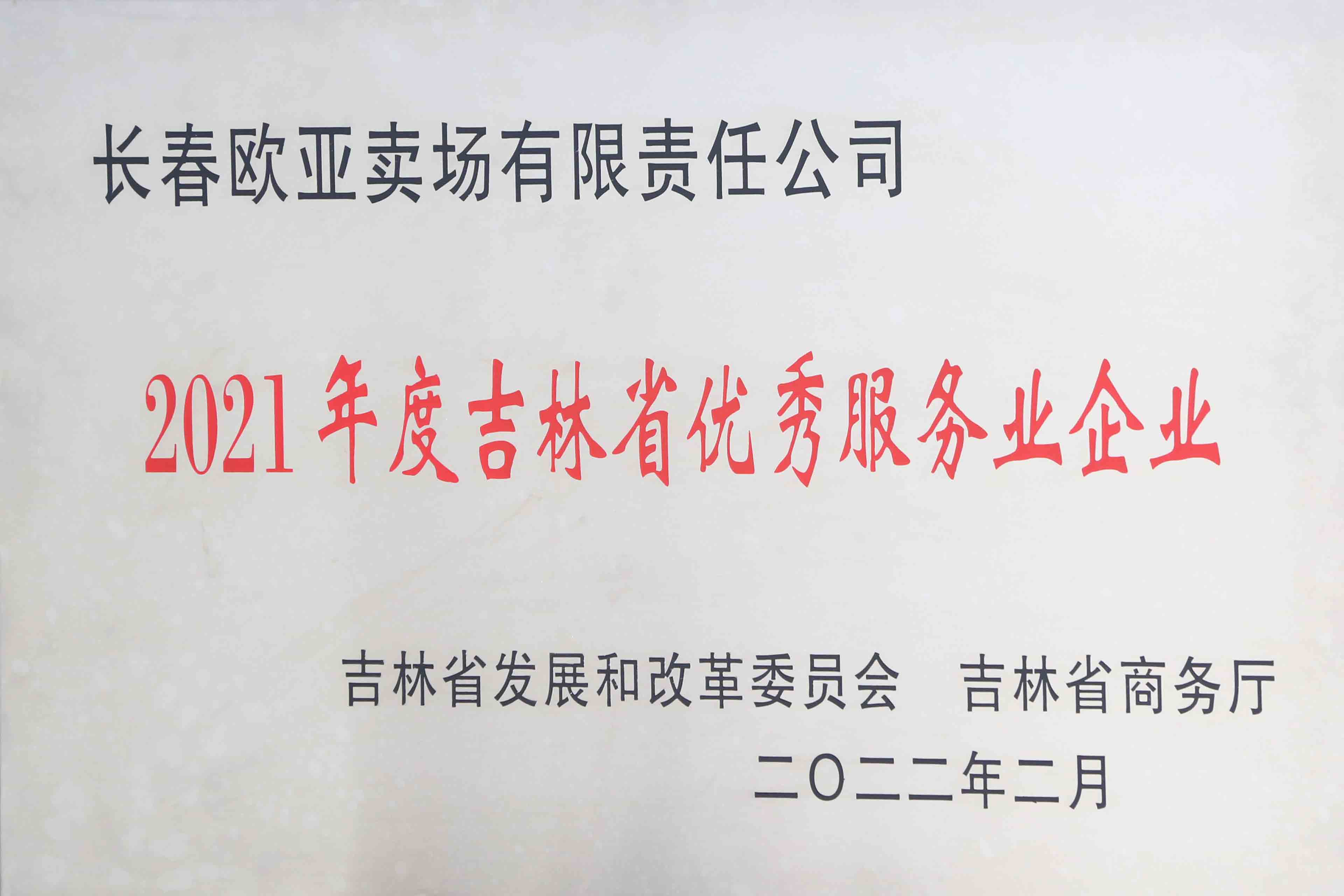 授予欧亚卖场“吉林省服务名牌企业”称号