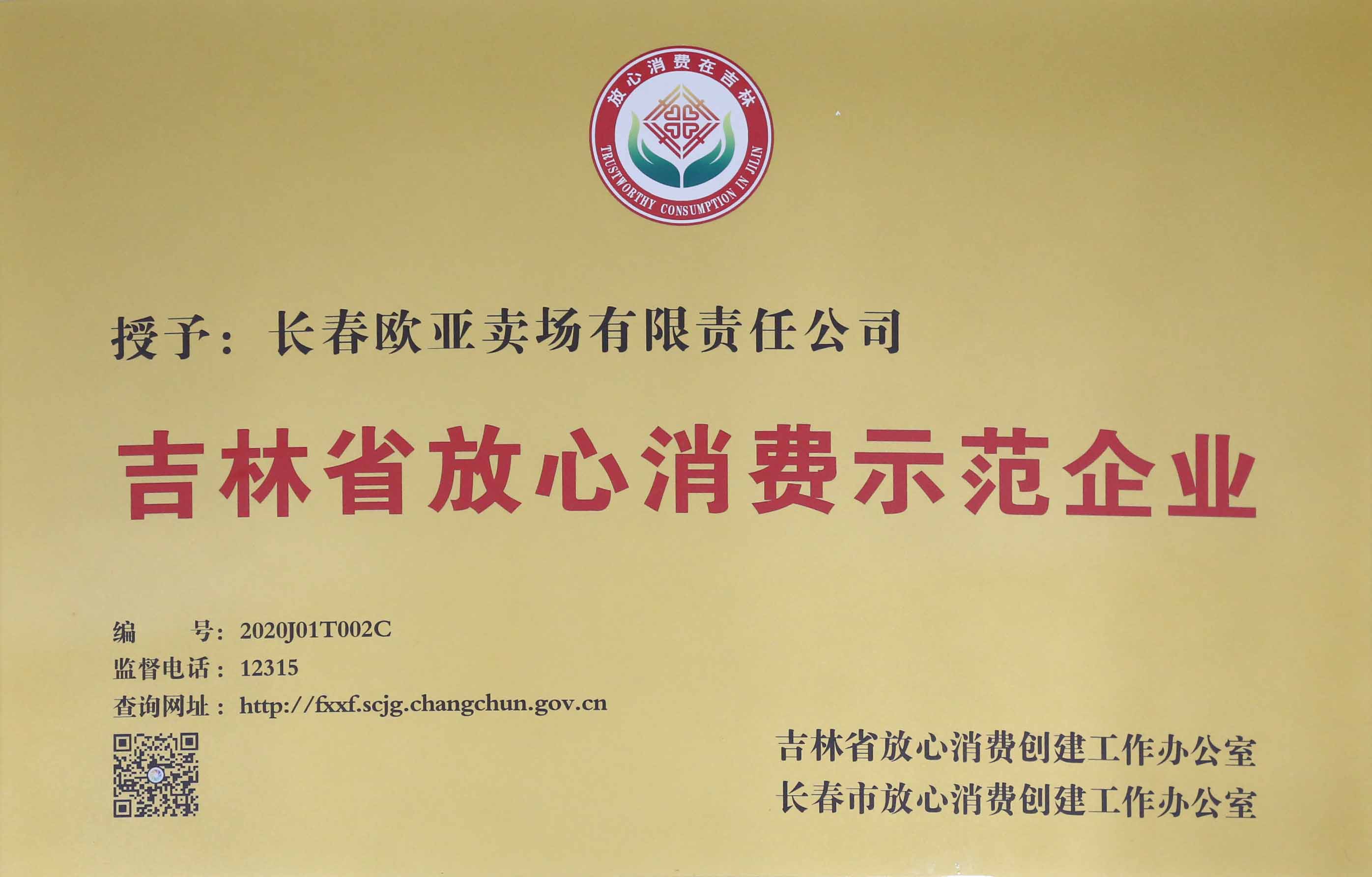 吉林省放心消费示范企业