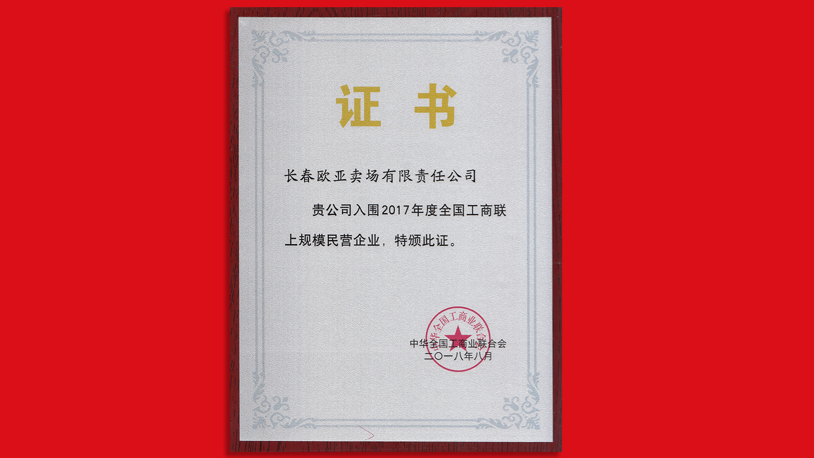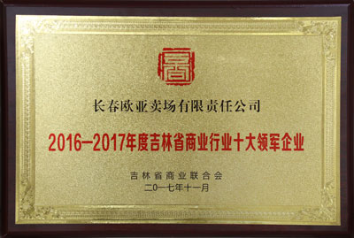 荣获2016-2017年度吉林省商业行业十大领军企业