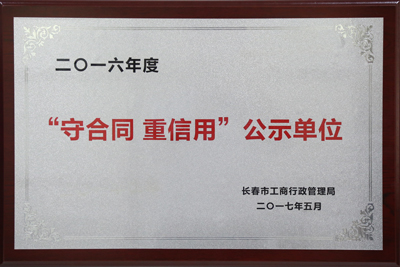 荣获吉林省“守合同重信用”AAA级企业