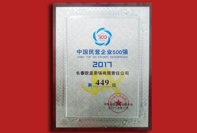 荣获“中国民营企业500强”