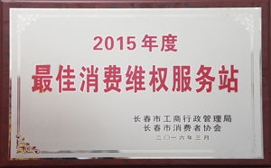 荣获2015年度消费者权益保护最佳单位