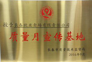 授予欧亚卖场“质量月宣传基地”称号