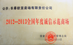 荣获2012-2013全国年度诚信示范商场