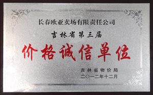 荣获吉林省第三届“价格诚信单位”