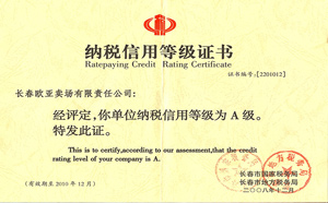 荣获纳税信用等级A级单位
