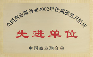 荣获全国商业服务业2002年度优质服务月活动“先进单位”