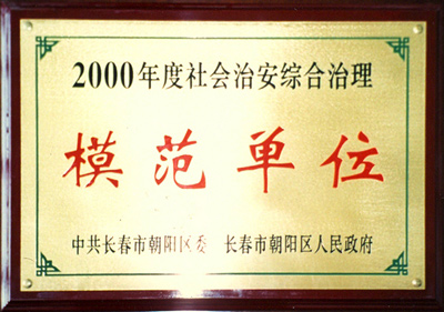 荣获2000年度社会治安综合治理“模范单位”